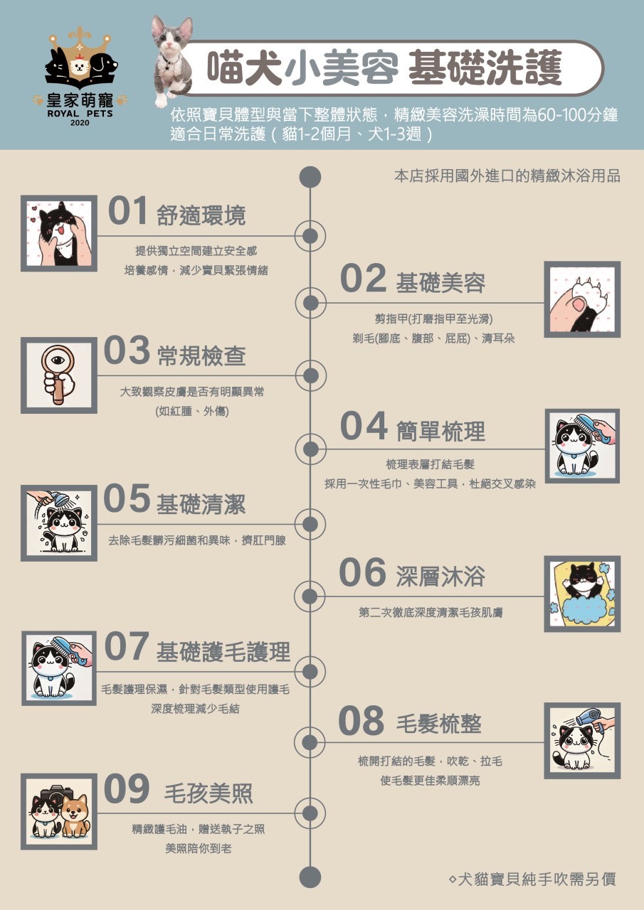 我們深知每隻喵星人和汪星人的肌膚都是獨一無二的,因此,在喵犬精緻SPA美容中,我們堅持使用天然溫和的護理產品,確保每一次護理都是對寵物肌膚的貼心呵護。